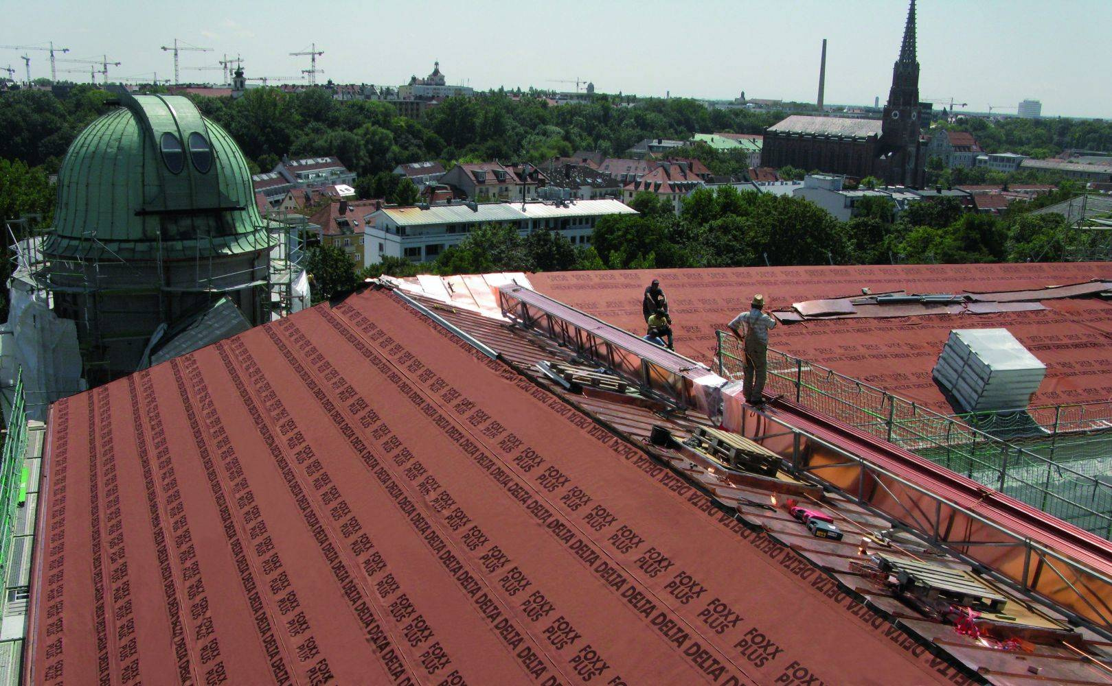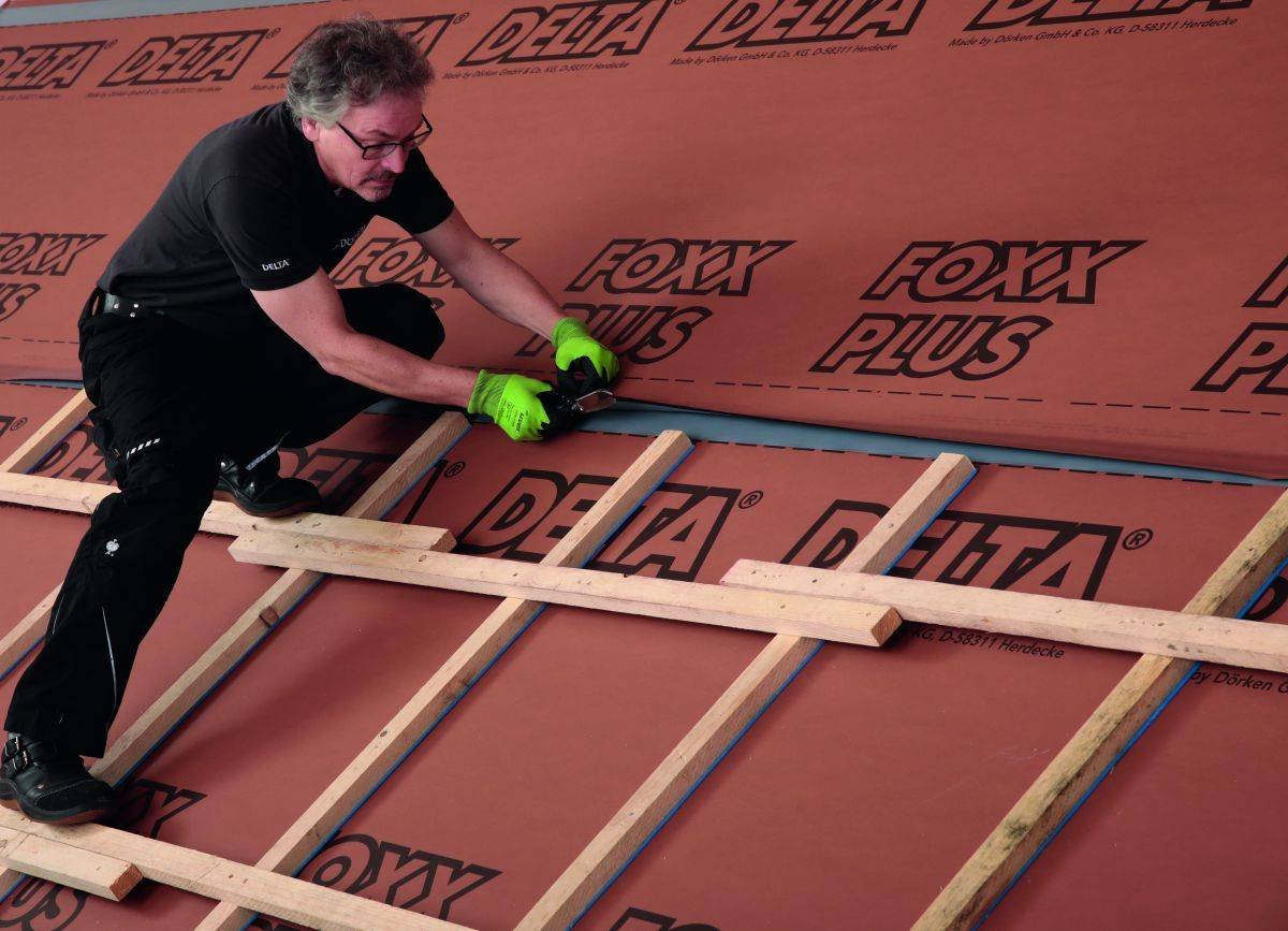 Membrana ta jest ekstremalnie wzmacniana, przeznaczona na dachy deskowane. Odporna na przetarcia i rozerwanie. Specjalna budowa chroni membranę przed uszkodzeniami w czasie prac dekarskich. Otwarta dyfuzyjnie folia szalunkowa do całkowicie izolowanych dachów spadzistych. W połączeniu z komponentami systemu DELTA spełnia wymagania odpornego na deszcz poddasza wg dekarskich reguł fachowych. Także jako folia wstępnego krycia. DELTA-FOXX PLUS ze zintegrowanym paskiem klejącym dla szybszego i wiatroszczelnego układania.