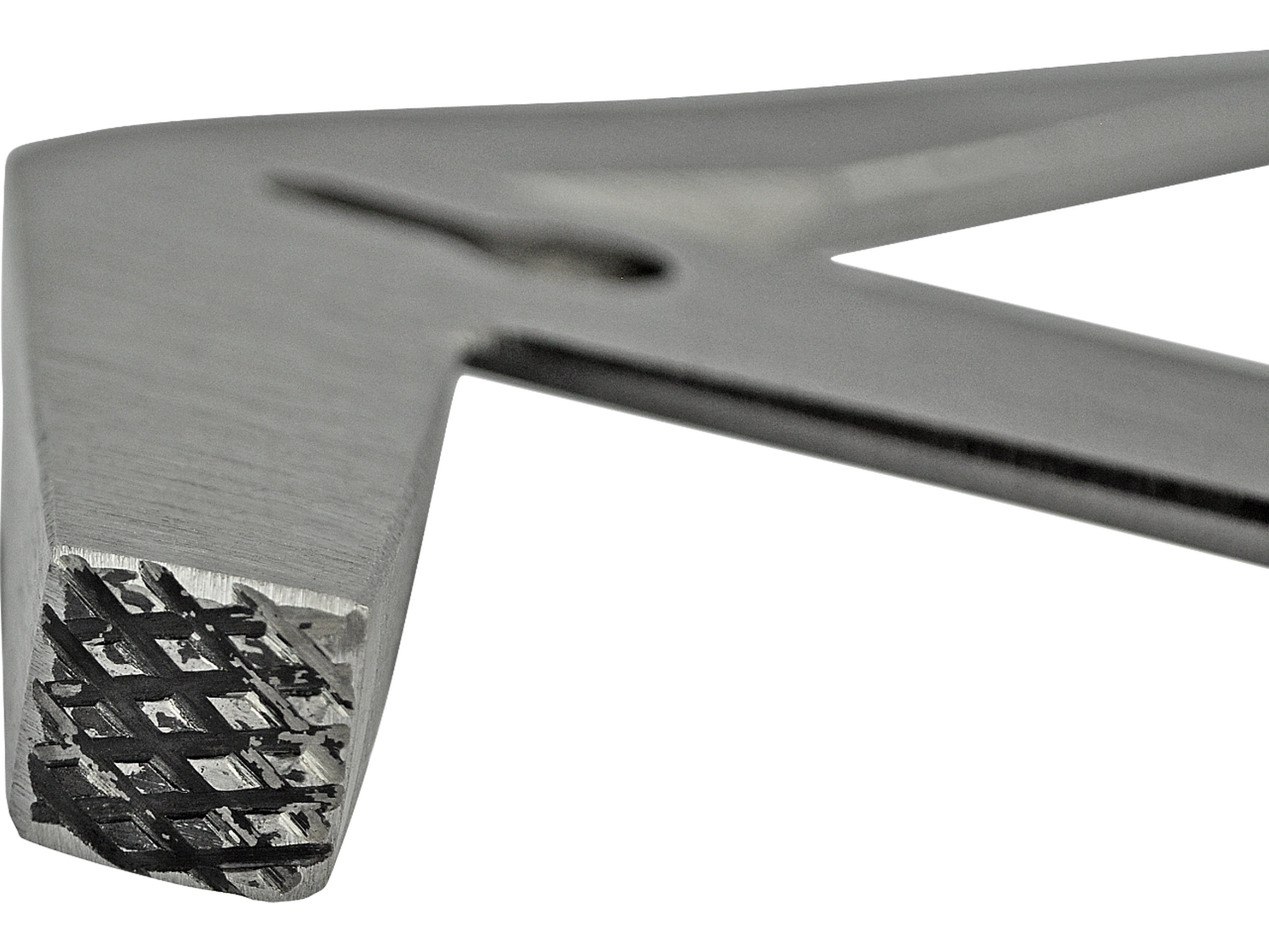 Młotek do wykonywania prac z łupka naturalnego, ręcznie kuty, szlifowany, rękojeść pokryta skórą, ostrze, obuch i szpic indukcyjnie hartowane, otwór do wyciągania gwoździ, osłona na szpic. Dostępnych w trzech wersjach: