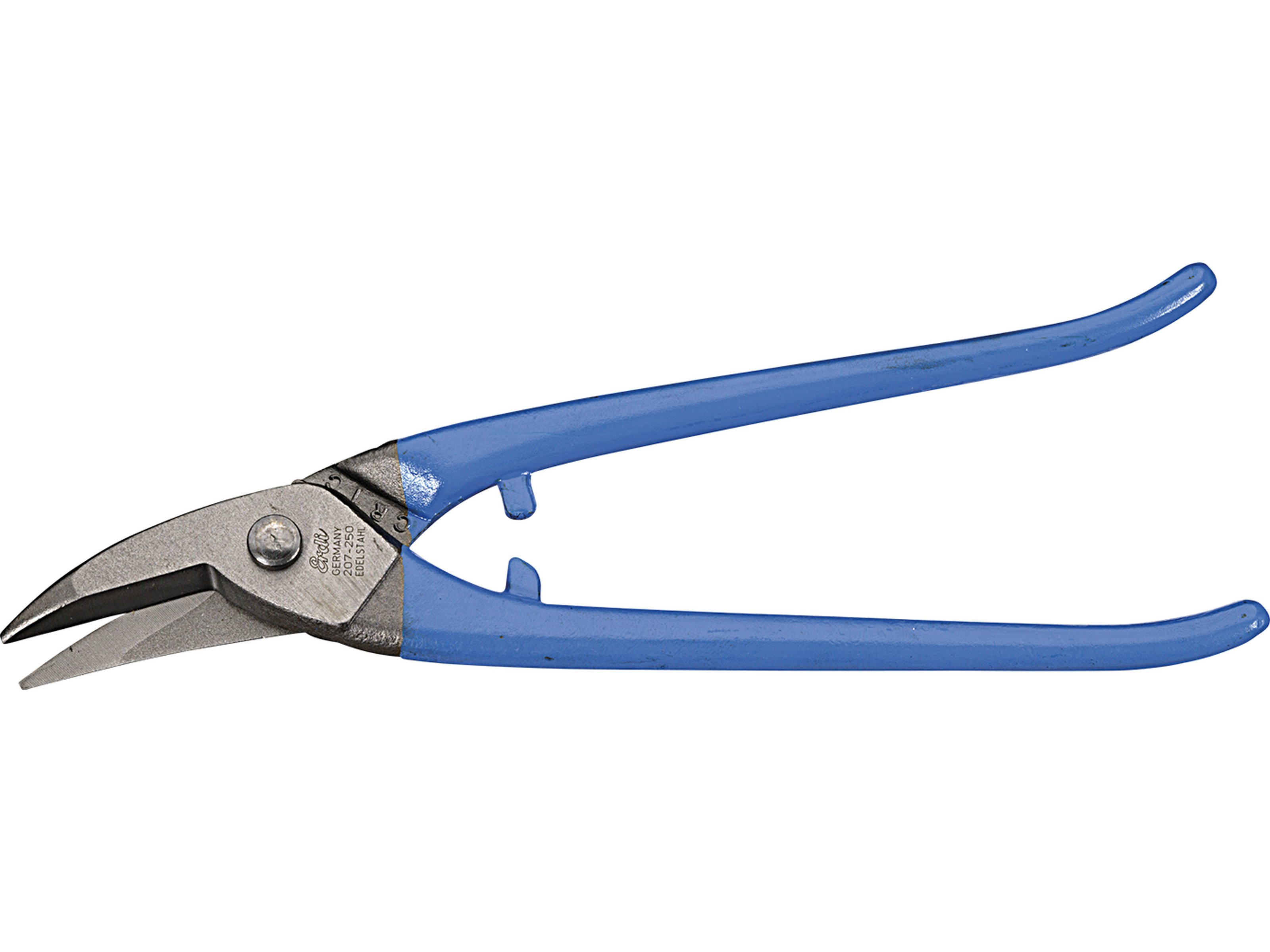 • Narzędzia dekarskie Freund - Profesjonalne nożyce otworowe o długości 275mm, służą do wycinania otworów, łuków i krótkiego cięcia prostego w blachach stalowych do gr.1,2mm, nierdzewnych 0,8mm. Długość robocza 42 mm.