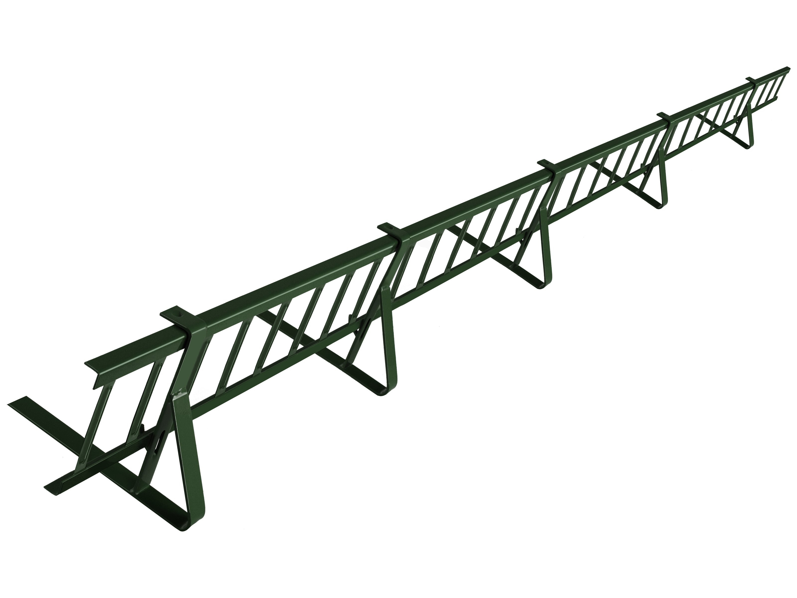 Płotek wykonany jest z kątownika stalowego o wymiarach 20 x 20 x 2 mm (szkielet płotka) oraz blachy stalowej o 20 x 1 mm (poprzeczki) specjalnie wyprofilowanej dla zwiększenia sztywności. Odległość między szczeblami płotka to 70 mm! Warto zwrócić uwagę na ilość poprzeczek w płotku! Nie zalecamy płotków o większych odległościach, ze względu na obniżoną zdolność zatrzymywania śniegu.