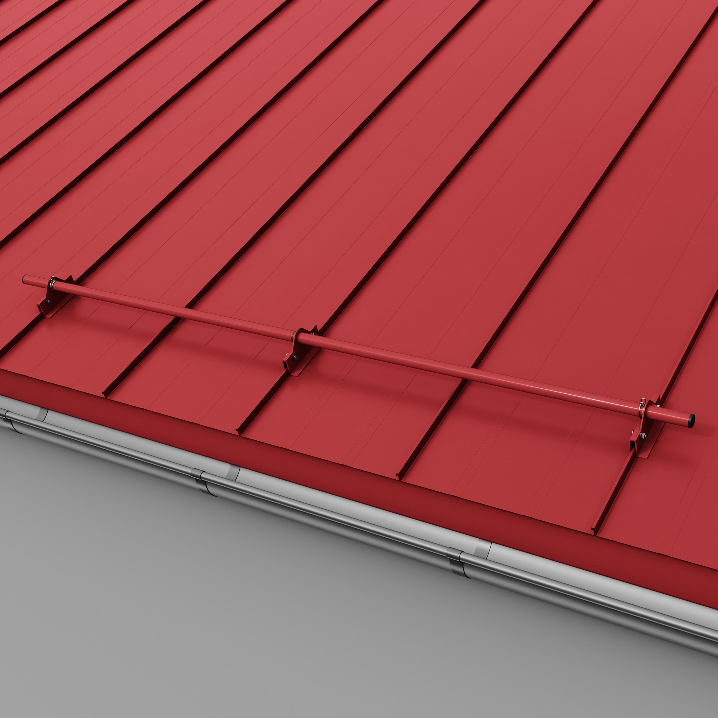 Kompletny zestaw ochrony rurowej RABEK składa się z rury i uchwytów. Uchwyt przykręcamy do rąbka stojącego tak, aby ruchomy element klamry dopasował się do zamka blachy. Klamrę wspornika zamykamy poprzez skręcenie jej śrubami zamkowymi M8x35. Ze względu na ograniczony dostęp do nakrętek zalecane jest użycie klucza grzechotki z nasadką nr 13. Montaż rury do uchwytu nie wymaga stosowania połączeń śrubowych. Liczba uchwytów potrzebnych do zamontowania rury zależy od kąta nachylenia dachu (im większy kąt, tym większa liczba uchwytów) oraz długości połaci. Dla dachów o długości połaci powyżej 6 m należy zwiększyć liczbę uchwytów lub zastosować drugi rząd ochrony rurowej.