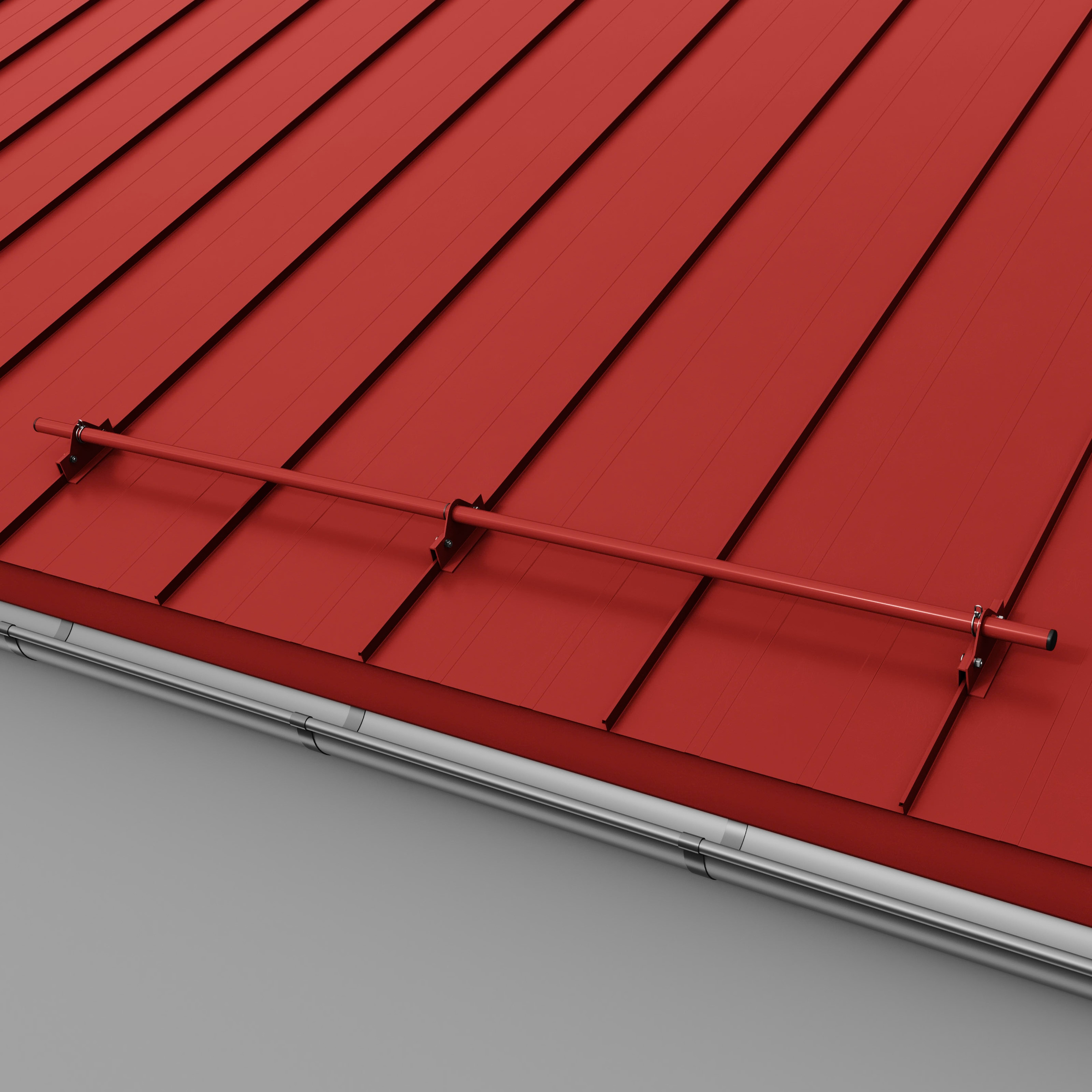 Kompletny zestaw ochrony rurowej RABEK składa się z rury i uchwytów. Uchwyt przykręcamy do rąbka stojącego tak, aby ruchomy element klamry dopasował się do zamka blachy. Klamrę wspornika zamykamy poprzez skręcenie jej śrubami zamkowymi M8x35. Ze względu na ograniczony dostęp do nakrętek zalecane jest użycie klucza grzechotki z nasadką nr 13. Montaż rury do uchwytu nie wymaga stosowania połączeń śrubowych. Liczba uchwytów potrzebnych do zamontowania rury zależy od kąta nachylenia dachu (im większy kąt, tym większa liczba uchwytów) oraz długości połaci. Dla dachów o długości połaci powyżej 6 m należy zwiększyć liczbę uchwytów lub zastosować drugi rząd ochrony rurowej.
