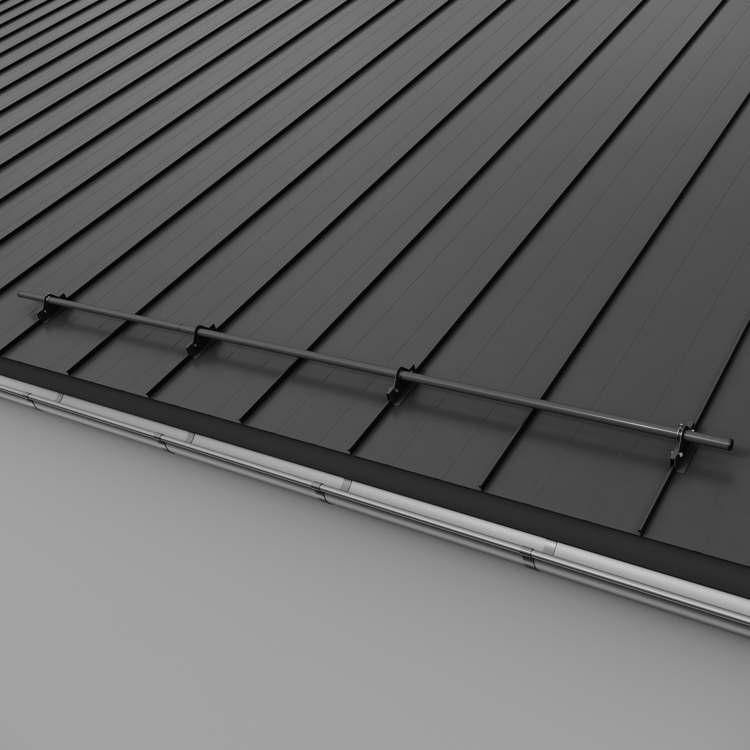 Kompletny zestaw ochrony rurowej RABEK składa się z rury i uchwytów. Uchwyt przykręcamy do rąbka stojącego tak, aby ruchomy element klamry dopasował się do zamka blachy. Klamrę wspornika zamykamy poprzez skręcenie jej śrubami zamkowymi M8x35. Ze względu na ograniczony dostęp do nakrętek zalecane jest użycie klucza grzechotki z nasadką nr 13. Montaż rury do uchwytu nie wymaga stosowania połączeń śrubowych. Liczba uchwytów potrzebnych do zamontowania rury zależy od kąta nachylenia dachu (im większy kąt, tym większa liczba uchwytów) oraz długości połaci. Dla dachów o długości połaci powyżej 6 m należy zwiększyć liczbę uchwytów lub zastosować drugi rząd ochrony rurowej.