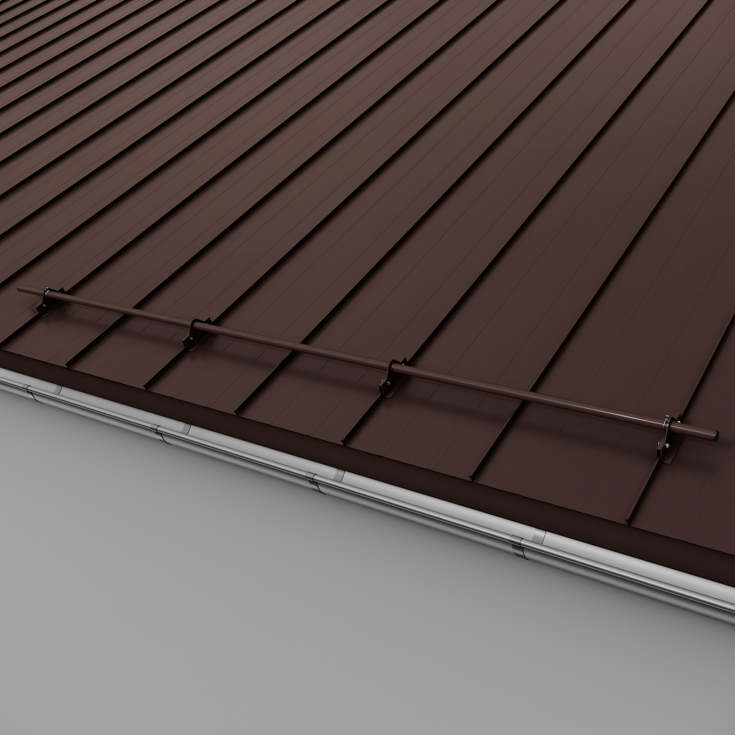 Kompletny zestaw ochrony rurowej RABEK składa się z rury i uchwytów. Uchwyt przykręcamy do rąbka stojącego tak, aby ruchomy element klamry dopasował się do zamka blachy. Klamrę wspornika zamykamy poprzez skręcenie jej śrubami zamkowymi M8x35. Ze względu na ograniczony dostęp do nakrętek zalecane jest użycie klucza grzechotki z nasadką nr 13. Montaż rury do uchwytu nie wymaga stosowania połączeń śrubowych. Liczba uchwytów potrzebnych do zamontowania rury zależy od kąta nachylenia dachu (im większy kąt, tym większa liczba uchwytów) oraz długości połaci. Dla dachów o długości połaci powyżej 6 m należy zwiększyć liczbę uchwytów lub zastosować drugi rząd ochrony rurowej.