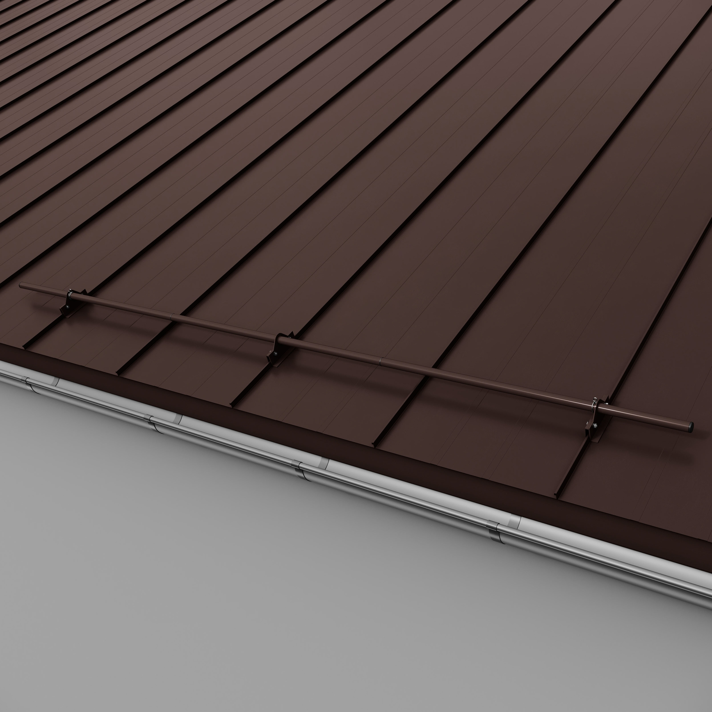 Kompletny zestaw ochrony rurowej RABEK składa się z rury i uchwytów. Uchwyt przykręcamy do rąbka stojącego tak, aby ruchomy element klamry dopasował się do zamka blachy. Klamrę wspornika zamykamy poprzez skręcenie jej śrubami zamkowymi M8x35. Ze względu na ograniczony dostęp do nakrętek zalecane jest użycie klucza grzechotki z nasadką nr 13. Montaż rury do uchwytu nie wymaga stosowania połączeń śrubowych. Liczba uchwytów potrzebnych do zamontowania rury zależy od kąta nachylenia dachu (im większy kąt, tym większa liczba uchwytów) oraz długości połaci. Dla dachów o długości połaci powyżej 6 m należy zwiększyć liczbę uchwytów lub zastosować drugi rząd ochrony rurowej.
