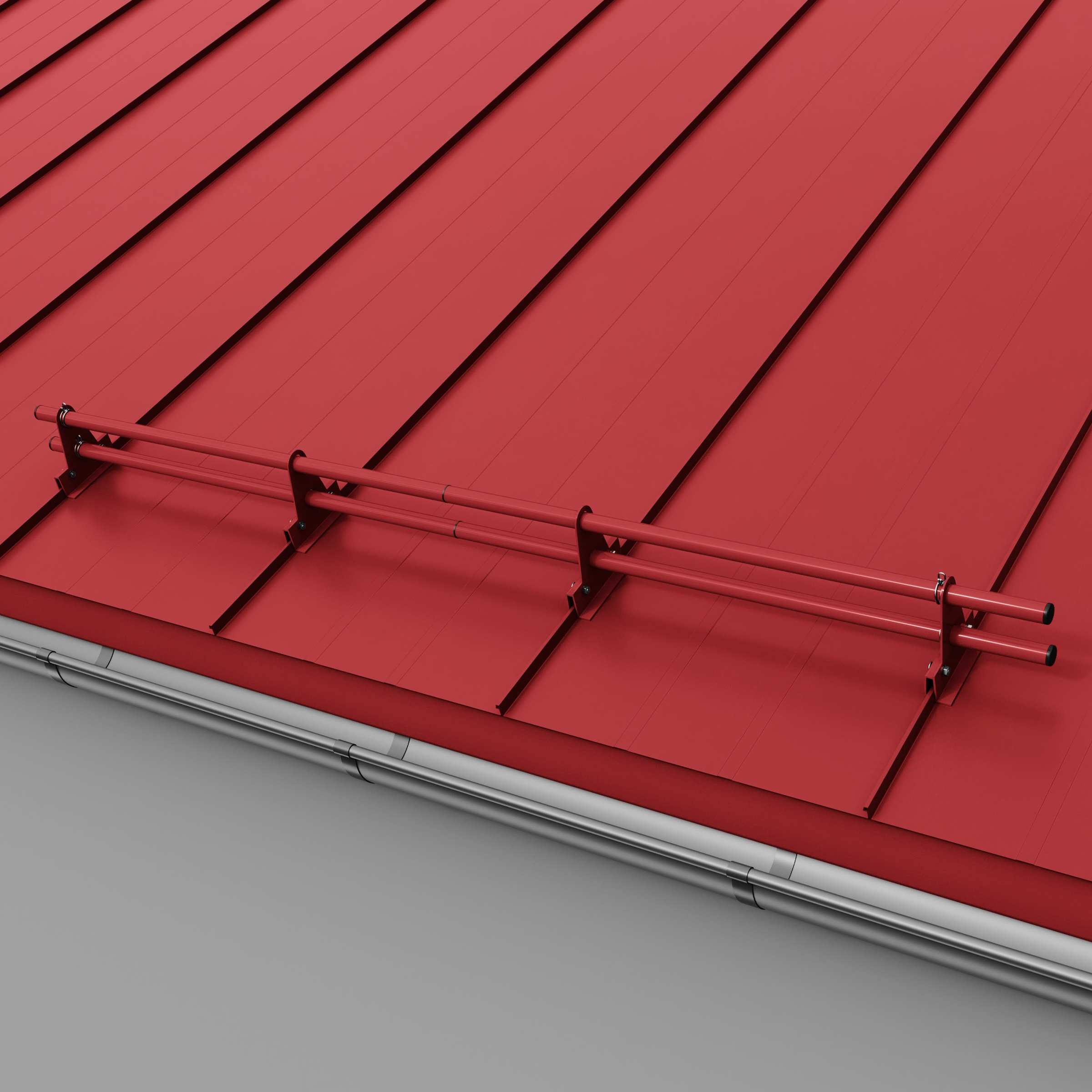 Kompletny zestaw ochrony rurowej RABEK składa się z rury i uchwytów. Uchwyt przykręcamy do rąbka stojącego tak, aby ruchomy element klamry dopasował się do zamka blachy. Klamrę wspornika zamykamy poprzez skręcenie jej śrubami zamkowymi M8x35. Ze względu na ograniczony dostęp do nakrętek zalecane jest użycie klucza grzechotki z nasadką nr 13. Montaż rury do uchwytu nie wymaga stosowania połączeń śrubowych. Liczba uchwytów potrzebnych do zamontowania rury zależy od kąta nachylenia dachu (im większy kąt, tym większa liczba uchwytów) oraz długości połaci. Dla dachów o długości połaci powyżej 6 m należy zwiększyć liczbę uchwytów lub zastosować drugi rząd ochrony rurowej.