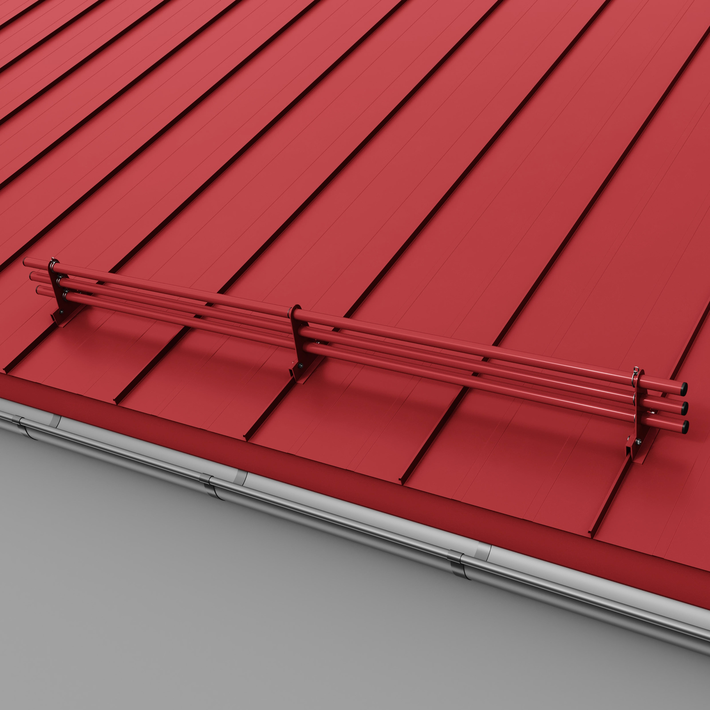 Kompletny zestaw ochrony rurowej RABEK składa się z rury i uchwytów. Uchwyt przykręcamy do rąbka stojącego tak, aby ruchomy element klamry dopasował się do zamka blachy. Klamrę wspornika zamykamy poprzez skręcenie jej śrubami zamkowymi M8x35. Ze względu na ograniczony dostęp do nakrętek zalecane jest użycie klucza grzechotki z nasadką nr 13. Montaż rury do uchwytu nie wymaga stosowania połączeń śrubowych. Liczba uchwytów potrzebnych do zamontowania rury zależy od kąta nachylenia dachu (im większy kąt, tym większa liczba uchwytów) oraz długości połaci. Dla dachów o długości połaci powyżej 6 m należy zwiększyć liczbę uchwytów lub zastosować drugi rząd ochrony rurowej.