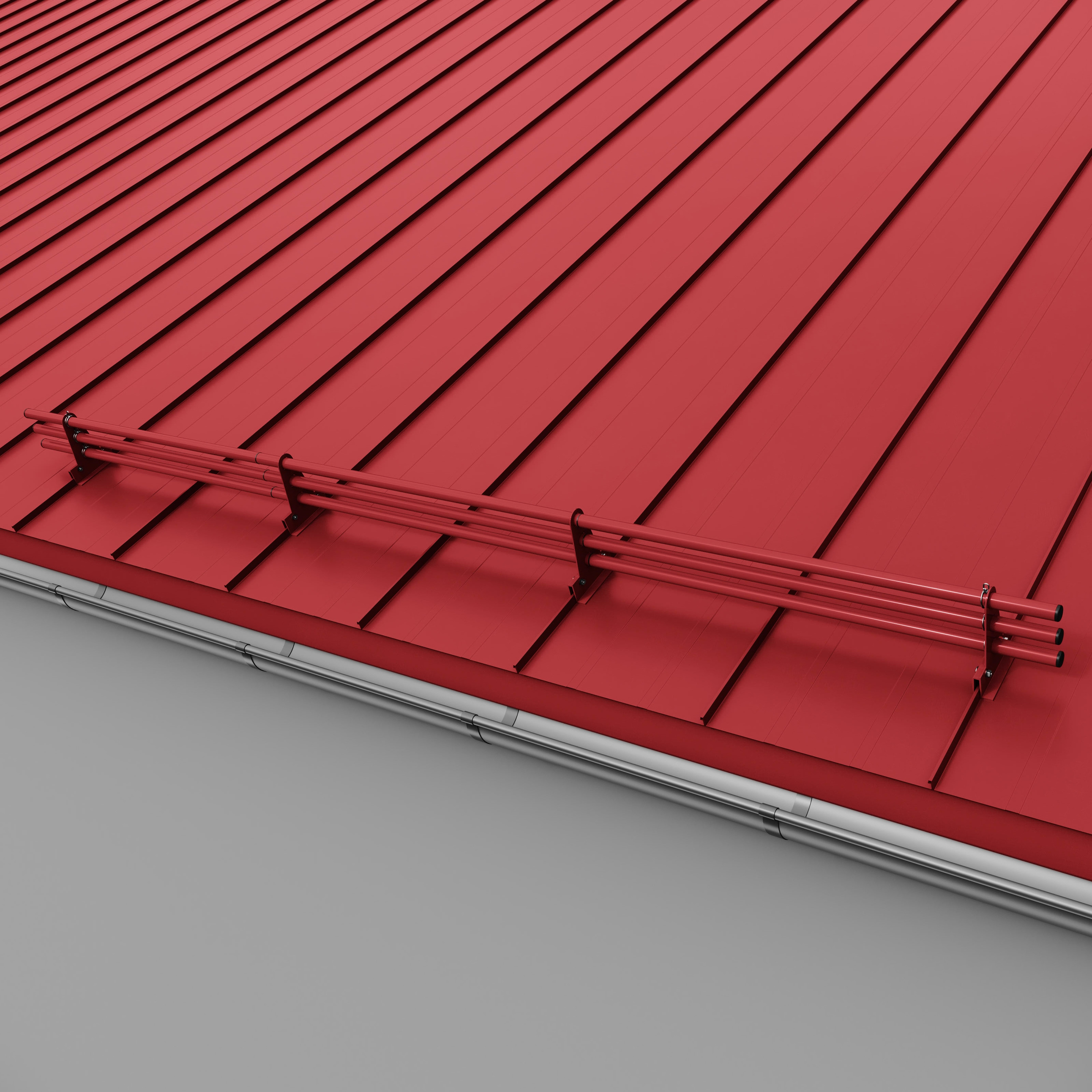 Kompletny zestaw ochrony rurowej RABEK składa się z rury i uchwytów. Uchwyt przykręcamy do rąbka stojącego tak, aby ruchomy element klamry dopasował się do zamka blachy. Klamrę wspornika zamykamy poprzez skręcenie jej śrubami zamkowymi M8x35. Ze względu na ograniczony dostęp do nakrętek zalecane jest użycie klucza grzechotki z nasadką nr 13. Montaż rury do uchwytu nie wymaga stosowania połączeń śrubowych. Liczba uchwytów potrzebnych do zamontowania rury zależy od kąta nachylenia dachu (im większy kąt, tym większa liczba uchwytów) oraz długości połaci. Dla dachów o długości połaci powyżej 6 m należy zwiększyć liczbę uchwytów lub zastosować drugi rząd ochrony rurowej.