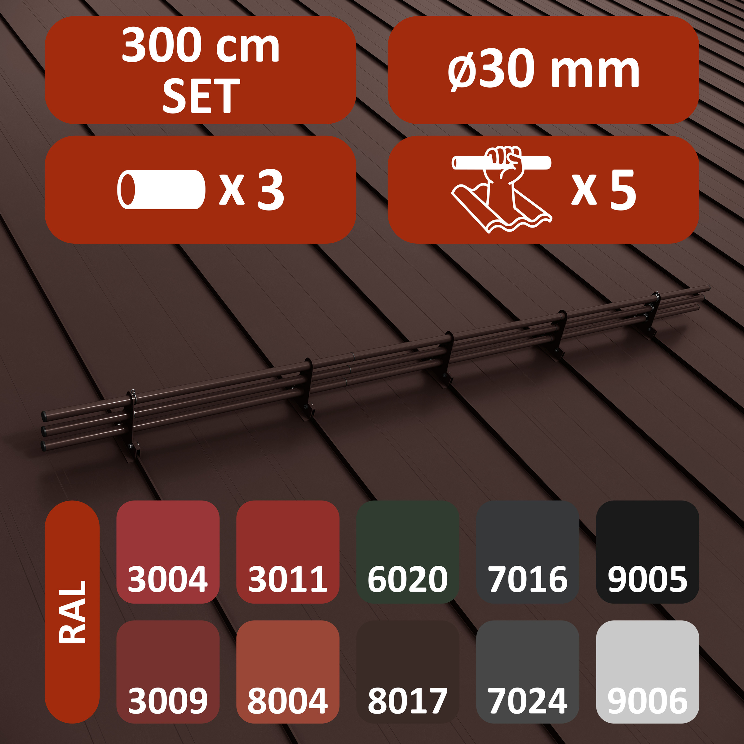 - 9 rur przeciwśniegowych o długości 1,0 m (100 cm) każda – łączna długość: 3,00 m