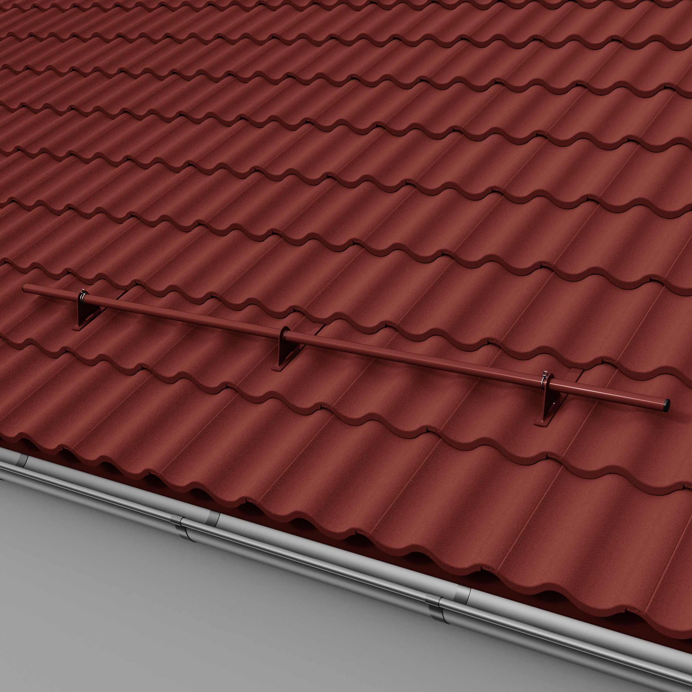 Komplet systemu rur przeciwśniegowych DZLN1 składa się z uchwytów z 1,2 lub 3 otworami i rury przeciwśniegowej. Prosty i szybki montaż tego uchwytu nie wymaga stosowania łaty pomocniczej. Montaż zestawu należy wykonać na wysokości murłaty lub w odległości nie większej niż 800 mm od niej. W pierwszej kolejności montujemy uchwyt rurowy zaczepiając go o łatę i dachówkę w jej górnej części. W dachówce, na której leży uchwyt zaleca się wykonanie wycięcie w kształcie "u" tak aby "zaczep" uchwytu oparty był o łatę a nie o grzbiet dachówki. Do montażu stosujemy wkręty do drewna z łbem stożkowym o wymiarach minimalnych Ø 6 mm x 50 mm. Przed przykręceniem można wstępnie nawiercić otwór o średnicy mniejszej niż średnica wkręta, tak aby zapobiec pękaniu drewna. W dachówce z następnego rzędu, przykrywającej uchwyt należy zeszlifować zamek na szerokość wspornika powiększoną o ok. 1 cm co wyeliminuje efekt unoszenia dachówek. Montaż rur do uchwytu odbywa się poprzez wsunięcie ich w otwory wspornika i nie wymaga stosowania połączeń śrubowych. Ilość uchwytów potrzebnych do zamontowania rur zależy od kąta nachylenia dachu (im większy kąt tym większa ilość uchwytów) oraz długości połaci. Dla dachów o długości połaci powyżej 6 m należy zwiększyć ilość uchwytów lub zastosować drugi rząd rur.