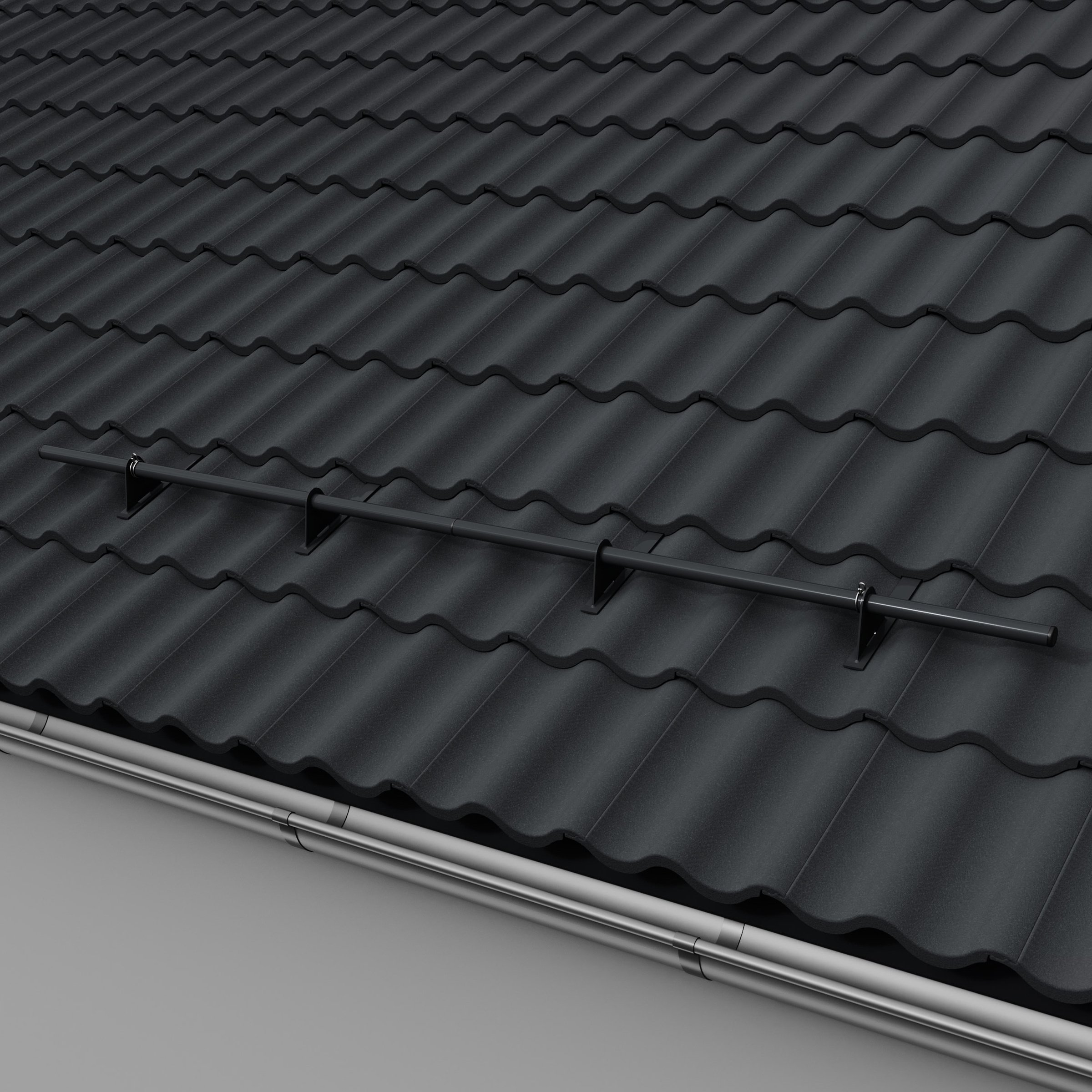 Komplet systemu rur przeciwśniegowych DZLN1 składa się z uchwytów z 1,2 lub 3 otworami i rury przeciwśniegowej. Prosty i szybki montaż tego uchwytu nie wymaga stosowania łaty pomocniczej. Montaż zestawu należy wykonać na wysokości murłaty lub w odległości nie większej niż 800 mm od niej. W pierwszej kolejności montujemy uchwyt rurowy zaczepiając go o łatę i dachówkę w jej górnej części. W dachówce, na której leży uchwyt zaleca się wykonanie wycięcie w kształcie "u" tak aby "zaczep" uchwytu oparty był o łatę a nie o grzbiet dachówki. Do montażu stosujemy wkręty do drewna z łbem stożkowym o wymiarach minimalnych Ø 6 mm x 50 mm. Przed przykręceniem można wstępnie nawiercić otwór o średnicy mniejszej niż średnica wkręta, tak aby zapobiec pękaniu drewna. W dachówce z następnego rzędu, przykrywającej uchwyt należy zeszlifować zamek na szerokość wspornika powiększoną o ok. 1 cm co wyeliminuje efekt unoszenia dachówek. Montaż rur do uchwytu odbywa się poprzez wsunięcie ich w otwory wspornika i nie wymaga stosowania połączeń śrubowych. Ilość uchwytów potrzebnych do zamontowania rur zależy od kąta nachylenia dachu (im większy kąt tym większa ilość uchwytów) oraz długości połaci. Dla dachów o długości połaci powyżej 6 m należy zwiększyć ilość uchwytów lub zastosować drugi rząd rur.