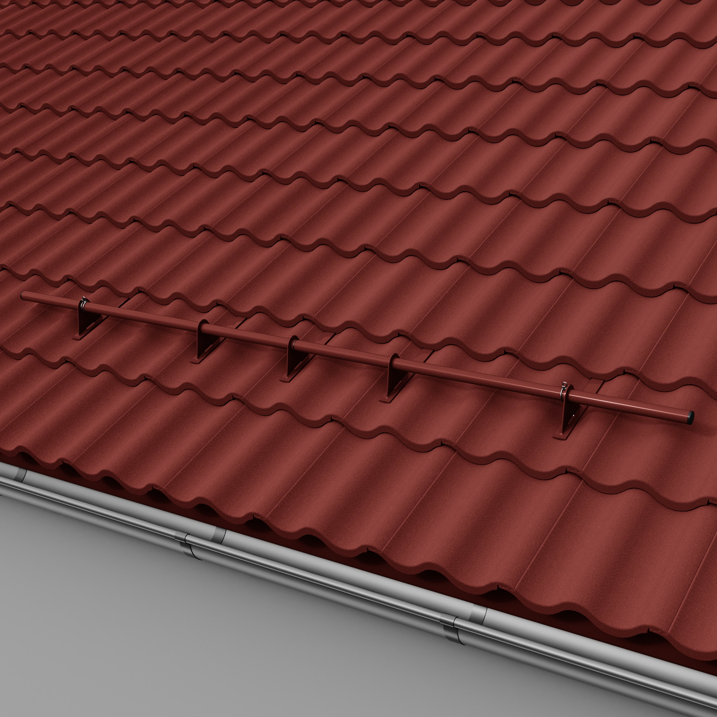 Komplet systemu rur przeciwśniegowych DZLN1 składa się z uchwytów z 1,2 lub 3 otworami i rury przeciwśniegowej. Prosty i szybki montaż tego uchwytu nie wymaga stosowania łaty pomocniczej. Montaż zestawu należy wykonać na wysokości murłaty lub w odległości nie większej niż 800 mm od niej. W pierwszej kolejności montujemy uchwyt rurowy zaczepiając go o łatę i dachówkę w jej górnej części. W dachówce, na której leży uchwyt zaleca się wykonanie wycięcie w kształcie "u" tak aby "zaczep" uchwytu oparty był o łatę a nie o grzbiet dachówki. Do montażu stosujemy wkręty do drewna z łbem stożkowym o wymiarach minimalnych Ø 6 mm x 50 mm. Przed przykręceniem można wstępnie nawiercić otwór o średnicy mniejszej niż średnica wkręta, tak aby zapobiec pękaniu drewna. W dachówce z następnego rzędu, przykrywającej uchwyt należy zeszlifować zamek na szerokość wspornika powiększoną o ok. 1 cm co wyeliminuje efekt unoszenia dachówek. Montaż rur do uchwytu odbywa się poprzez wsunięcie ich w otwory wspornika i nie wymaga stosowania połączeń śrubowych. Ilość uchwytów potrzebnych do zamontowania rur zależy od kąta nachylenia dachu (im większy kąt tym większa ilość uchwytów) oraz długości połaci. Dla dachów o długości połaci powyżej 6 m należy zwiększyć ilość uchwytów lub zastosować drugi rząd rur.