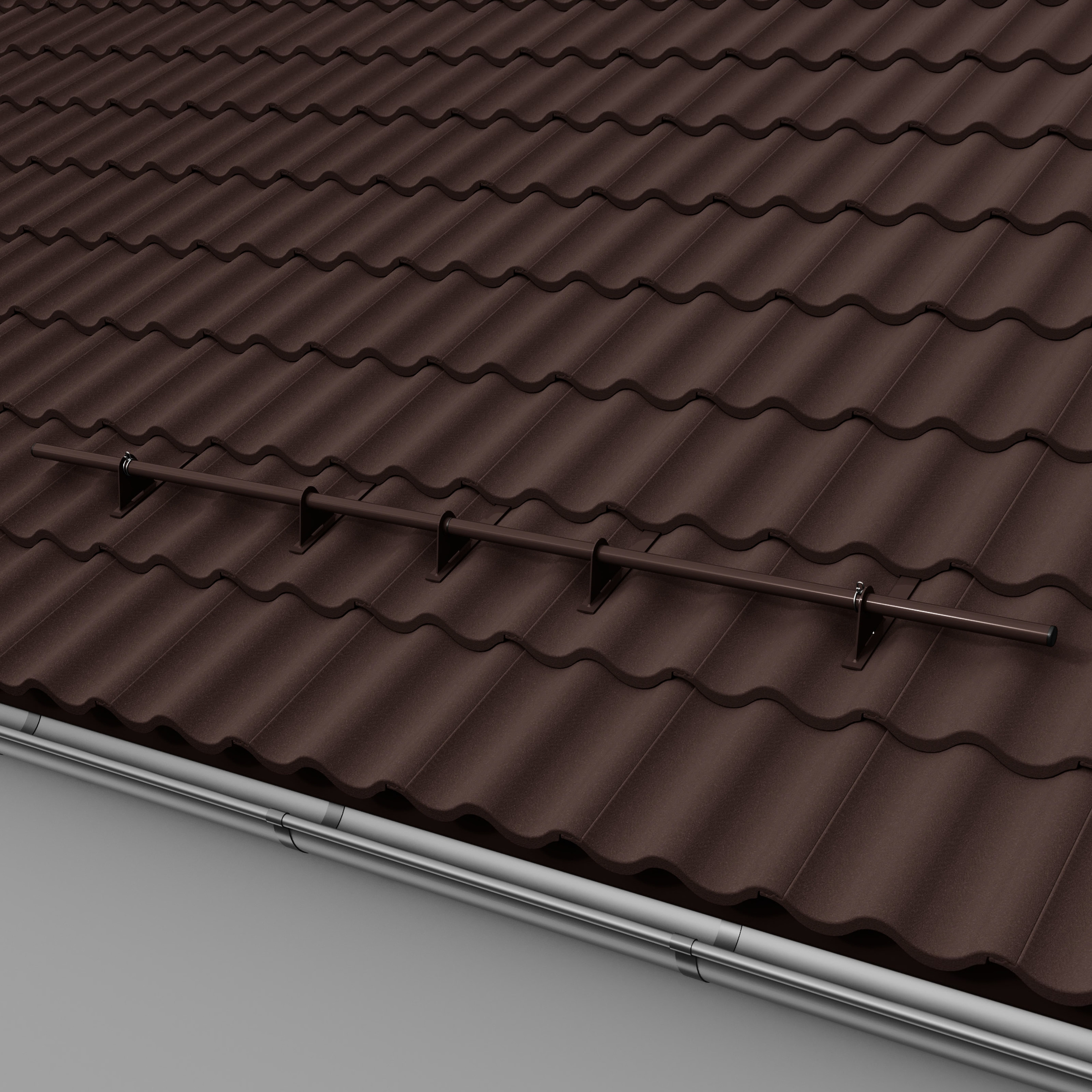 Komplet systemu rur przeciwśniegowych DZLN1 składa się z uchwytów z 1,2 lub 3 otworami i rury przeciwśniegowej. Prosty i szybki montaż tego uchwytu nie wymaga stosowania łaty pomocniczej. Montaż zestawu należy wykonać na wysokości murłaty lub w odległości nie większej niż 800 mm od niej. W pierwszej kolejności montujemy uchwyt rurowy zaczepiając go o łatę i dachówkę w jej górnej części. W dachówce, na której leży uchwyt zaleca się wykonanie wycięcie w kształcie "u" tak aby "zaczep" uchwytu oparty był o łatę a nie o grzbiet dachówki. Do montażu stosujemy wkręty do drewna z łbem stożkowym o wymiarach minimalnych Ø 6 mm x 50 mm. Przed przykręceniem można wstępnie nawiercić otwór o średnicy mniejszej niż średnica wkręta, tak aby zapobiec pękaniu drewna. W dachówce z następnego rzędu, przykrywającej uchwyt należy zeszlifować zamek na szerokość wspornika powiększoną o ok. 1 cm co wyeliminuje efekt unoszenia dachówek. Montaż rur do uchwytu odbywa się poprzez wsunięcie ich w otwory wspornika i nie wymaga stosowania połączeń śrubowych. Ilość uchwytów potrzebnych do zamontowania rur zależy od kąta nachylenia dachu (im większy kąt tym większa ilość uchwytów) oraz długości połaci. Dla dachów o długości połaci powyżej 6 m należy zwiększyć ilość uchwytów lub zastosować drugi rząd rur.