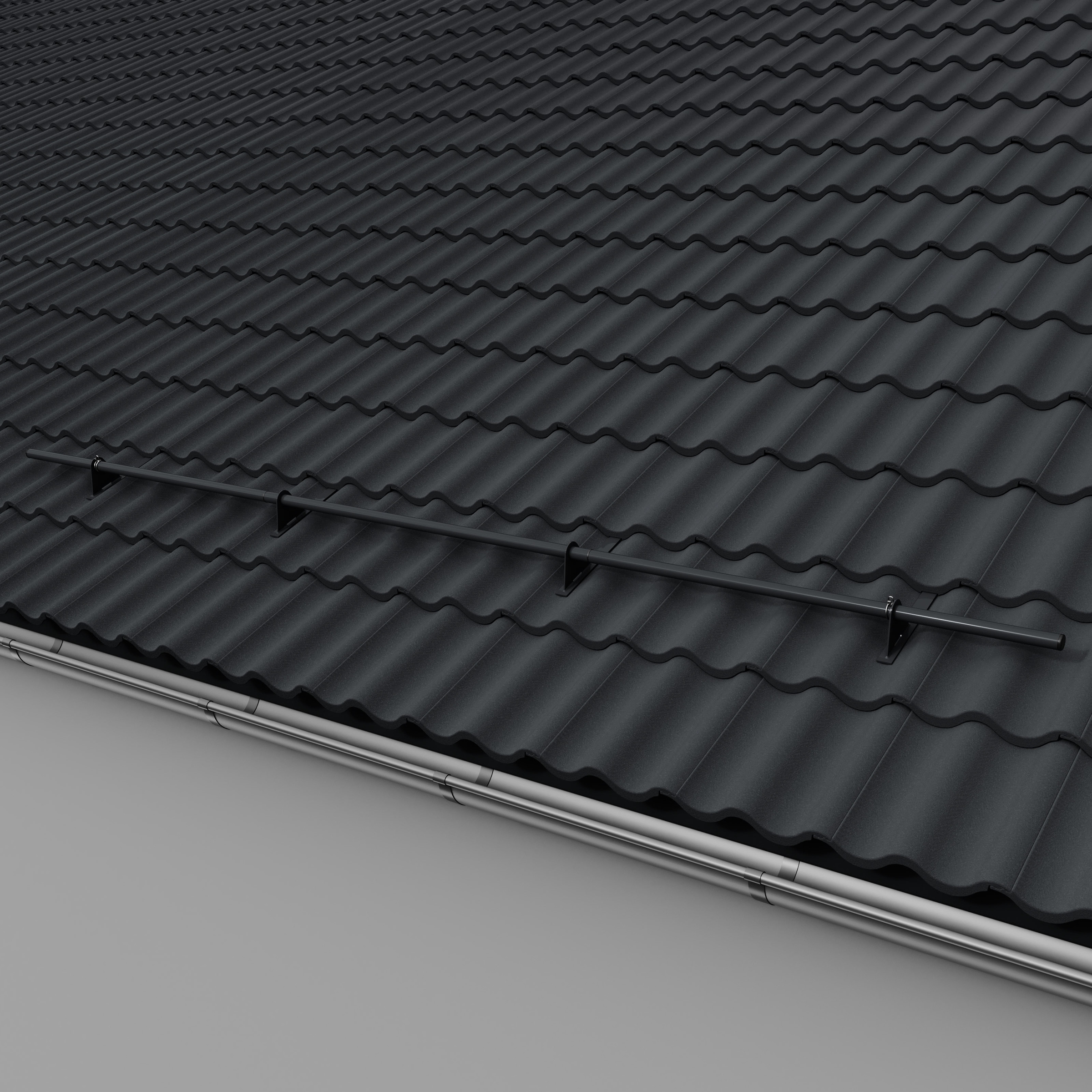 Komplet systemu rur przeciwśniegowych DZLN1 składa się z uchwytów z 1,2 lub 3 otworami i rury przeciwśniegowej. Prosty i szybki montaż tego uchwytu nie wymaga stosowania łaty pomocniczej. Montaż zestawu należy wykonać na wysokości murłaty lub w odległości nie większej niż 800 mm od niej. W pierwszej kolejności montujemy uchwyt rurowy zaczepiając go o łatę i dachówkę w jej górnej części. W dachówce, na której leży uchwyt zaleca się wykonanie wycięcie w kształcie "u" tak aby "zaczep" uchwytu oparty był o łatę a nie o grzbiet dachówki. Do montażu stosujemy wkręty do drewna z łbem stożkowym o wymiarach minimalnych Ø 6 mm x 50 mm. Przed przykręceniem można wstępnie nawiercić otwór o średnicy mniejszej niż średnica wkręta, tak aby zapobiec pękaniu drewna. W dachówce z następnego rzędu, przykrywającej uchwyt należy zeszlifować zamek na szerokość wspornika powiększoną o ok. 1 cm co wyeliminuje efekt unoszenia dachówek. Montaż rur do uchwytu odbywa się poprzez wsunięcie ich w otwory wspornika i nie wymaga stosowania połączeń śrubowych. Ilość uchwytów potrzebnych do zamontowania rur zależy od kąta nachylenia dachu (im większy kąt tym większa ilość uchwytów) oraz długości połaci. Dla dachów o długości połaci powyżej 6 m należy zwiększyć ilość uchwytów lub zastosować drugi rząd rur.
