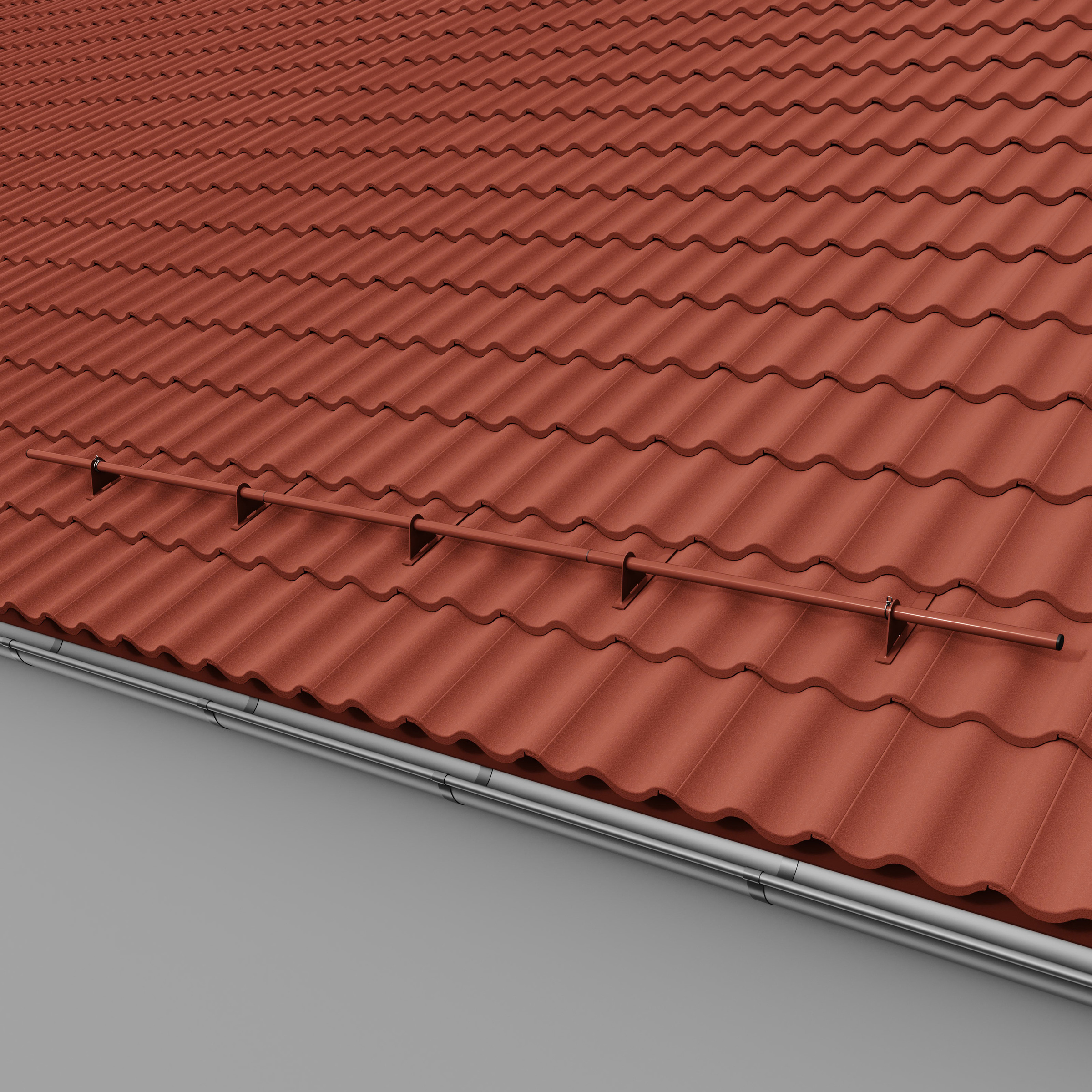 Komplet systemu rur przeciwśniegowych DZLN1 składa się z uchwytów z 1,2 lub 3 otworami i rury przeciwśniegowej. Prosty i szybki montaż tego uchwytu nie wymaga stosowania łaty pomocniczej. Montaż zestawu należy wykonać na wysokości murłaty lub w odległości nie większej niż 800 mm od niej. W pierwszej kolejności montujemy uchwyt rurowy zaczepiając go o łatę i dachówkę w jej górnej części. W dachówce, na której leży uchwyt zaleca się wykonanie wycięcie w kształcie "u" tak aby "zaczep" uchwytu oparty był o łatę a nie o grzbiet dachówki. Do montażu stosujemy wkręty do drewna z łbem stożkowym o wymiarach minimalnych Ø 6 mm x 50 mm. Przed przykręceniem można wstępnie nawiercić otwór o średnicy mniejszej niż średnica wkręta, tak aby zapobiec pękaniu drewna. W dachówce z następnego rzędu, przykrywającej uchwyt należy zeszlifować zamek na szerokość wspornika powiększoną o ok. 1 cm co wyeliminuje efekt unoszenia dachówek. Montaż rur do uchwytu odbywa się poprzez wsunięcie ich w otwory wspornika i nie wymaga stosowania połączeń śrubowych. Ilość uchwytów potrzebnych do zamontowania rur zależy od kąta nachylenia dachu (im większy kąt tym większa ilość uchwytów) oraz długości połaci. Dla dachów o długości połaci powyżej 6 m należy zwiększyć ilość uchwytów lub zastosować drugi rząd rur.