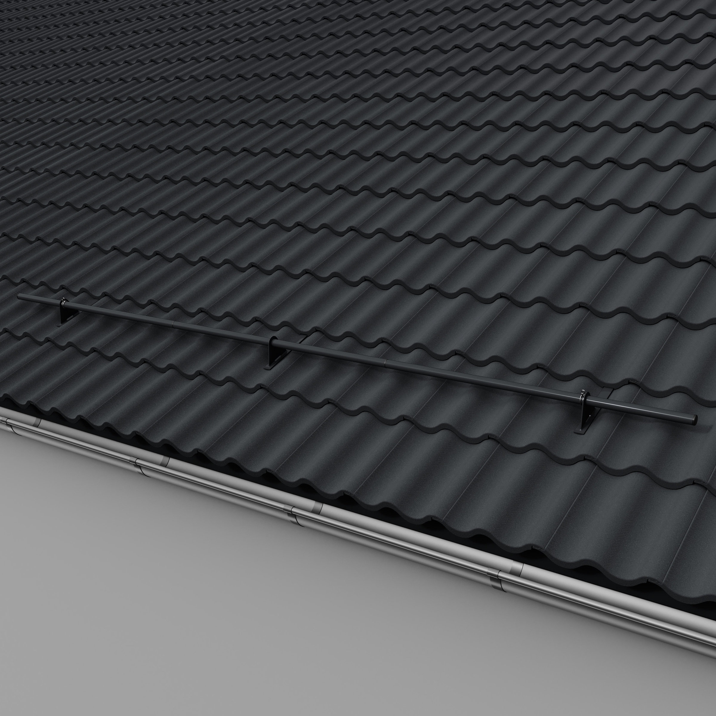 Komplet systemu rur przeciwśniegowych DZLN1 składa się z uchwytów z 1,2 lub 3 otworami i rury przeciwśniegowej. Prosty i szybki montaż tego uchwytu nie wymaga stosowania łaty pomocniczej. Montaż zestawu należy wykonać na wysokości murłaty lub w odległości nie większej niż 800 mm od niej. W pierwszej kolejności montujemy uchwyt rurowy zaczepiając go o łatę i dachówkę w jej górnej części. W dachówce, na której leży uchwyt zaleca się wykonanie wycięcie w kształcie "u" tak aby "zaczep" uchwytu oparty był o łatę a nie o grzbiet dachówki. Do montażu stosujemy wkręty do drewna z łbem stożkowym o wymiarach minimalnych Ø 6 mm x 50 mm. Przed przykręceniem można wstępnie nawiercić otwór o średnicy mniejszej niż średnica wkręta, tak aby zapobiec pękaniu drewna. W dachówce z następnego rzędu, przykrywającej uchwyt należy zeszlifować zamek na szerokość wspornika powiększoną o ok. 1 cm co wyeliminuje efekt unoszenia dachówek. Montaż rur do uchwytu odbywa się poprzez wsunięcie ich w otwory wspornika i nie wymaga stosowania połączeń śrubowych. Ilość uchwytów potrzebnych do zamontowania rur zależy od kąta nachylenia dachu (im większy kąt tym większa ilość uchwytów) oraz długości połaci. Dla dachów o długości połaci powyżej 6 m należy zwiększyć ilość uchwytów lub zastosować drugi rząd rur.