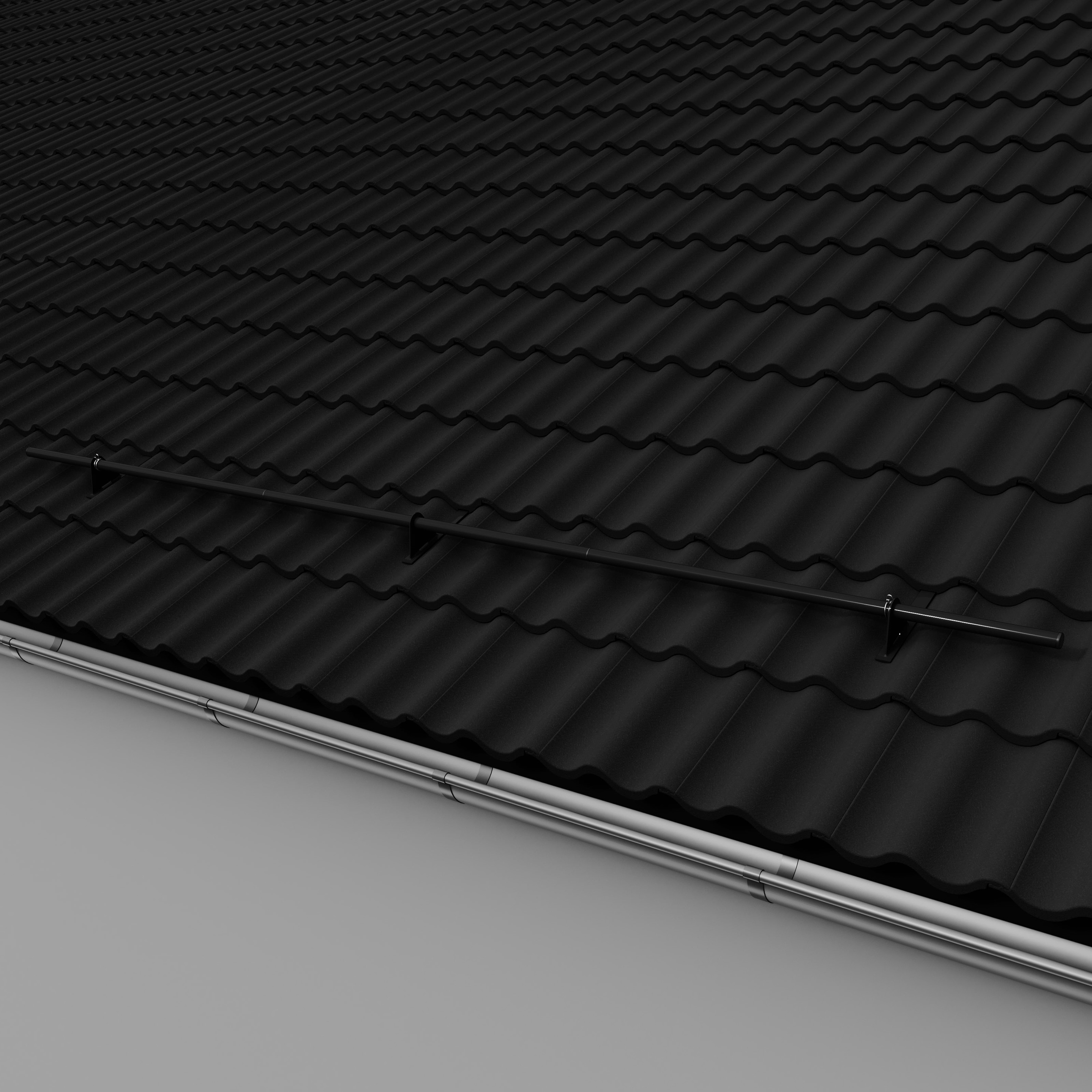 Komplet systemu rur przeciwśniegowych DZLN1 składa się z uchwytów z 1,2 lub 3 otworami i rury przeciwśniegowej. Prosty i szybki montaż tego uchwytu nie wymaga stosowania łaty pomocniczej. Montaż zestawu należy wykonać na wysokości murłaty lub w odległości nie większej niż 800 mm od niej. W pierwszej kolejności montujemy uchwyt rurowy zaczepiając go o łatę i dachówkę w jej górnej części. W dachówce, na której leży uchwyt zaleca się wykonanie wycięcie w kształcie "u" tak aby "zaczep" uchwytu oparty był o łatę a nie o grzbiet dachówki. Do montażu stosujemy wkręty do drewna z łbem stożkowym o wymiarach minimalnych Ø 6 mm x 50 mm. Przed przykręceniem można wstępnie nawiercić otwór o średnicy mniejszej niż średnica wkręta, tak aby zapobiec pękaniu drewna. W dachówce z następnego rzędu, przykrywającej uchwyt należy zeszlifować zamek na szerokość wspornika powiększoną o ok. 1 cm co wyeliminuje efekt unoszenia dachówek. Montaż rur do uchwytu odbywa się poprzez wsunięcie ich w otwory wspornika i nie wymaga stosowania połączeń śrubowych. Ilość uchwytów potrzebnych do zamontowania rur zależy od kąta nachylenia dachu (im większy kąt tym większa ilość uchwytów) oraz długości połaci. Dla dachów o długości połaci powyżej 6 m należy zwiększyć ilość uchwytów lub zastosować drugi rząd rur.