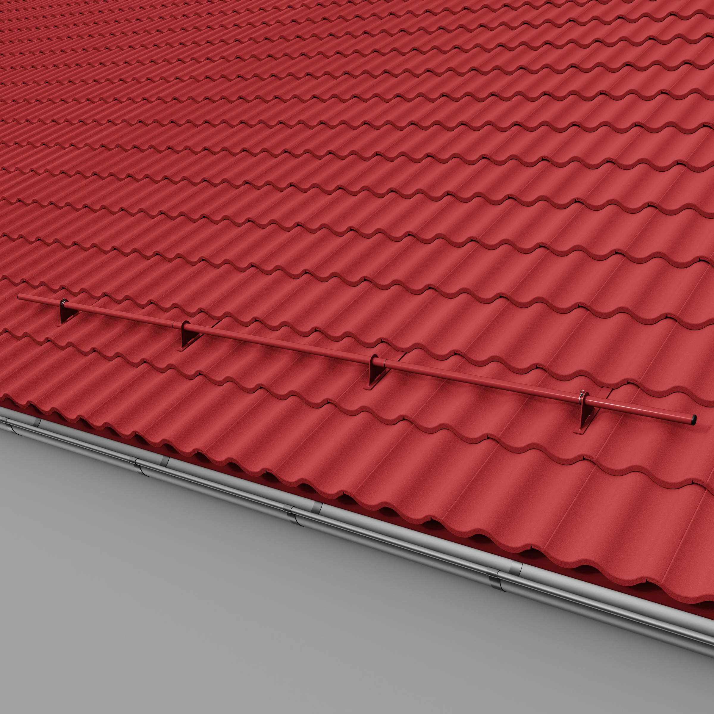 Komplet systemu rur przeciwśniegowych DZLN1 składa się z uchwytów z 1,2 lub 3 otworami i rury przeciwśniegowej. Prosty i szybki montaż tego uchwytu nie wymaga stosowania łaty pomocniczej. Montaż zestawu należy wykonać na wysokości murłaty lub w odległości nie większej niż 800 mm od niej. W pierwszej kolejności montujemy uchwyt rurowy zaczepiając go o łatę i dachówkę w jej górnej części. W dachówce, na której leży uchwyt zaleca się wykonanie wycięcie w kształcie "u" tak aby "zaczep" uchwytu oparty był o łatę a nie o grzbiet dachówki. Do montażu stosujemy wkręty do drewna z łbem stożkowym o wymiarach minimalnych Ø 6 mm x 50 mm. Przed przykręceniem można wstępnie nawiercić otwór o średnicy mniejszej niż średnica wkręta, tak aby zapobiec pękaniu drewna. W dachówce z następnego rzędu, przykrywającej uchwyt należy zeszlifować zamek na szerokość wspornika powiększoną o ok. 1 cm co wyeliminuje efekt unoszenia dachówek. Montaż rur do uchwytu odbywa się poprzez wsunięcie ich w otwory wspornika i nie wymaga stosowania połączeń śrubowych. Ilość uchwytów potrzebnych do zamontowania rur zależy od kąta nachylenia dachu (im większy kąt tym większa ilość uchwytów) oraz długości połaci. Dla dachów o długości połaci powyżej 6 m należy zwiększyć ilość uchwytów lub zastosować drugi rząd rur.