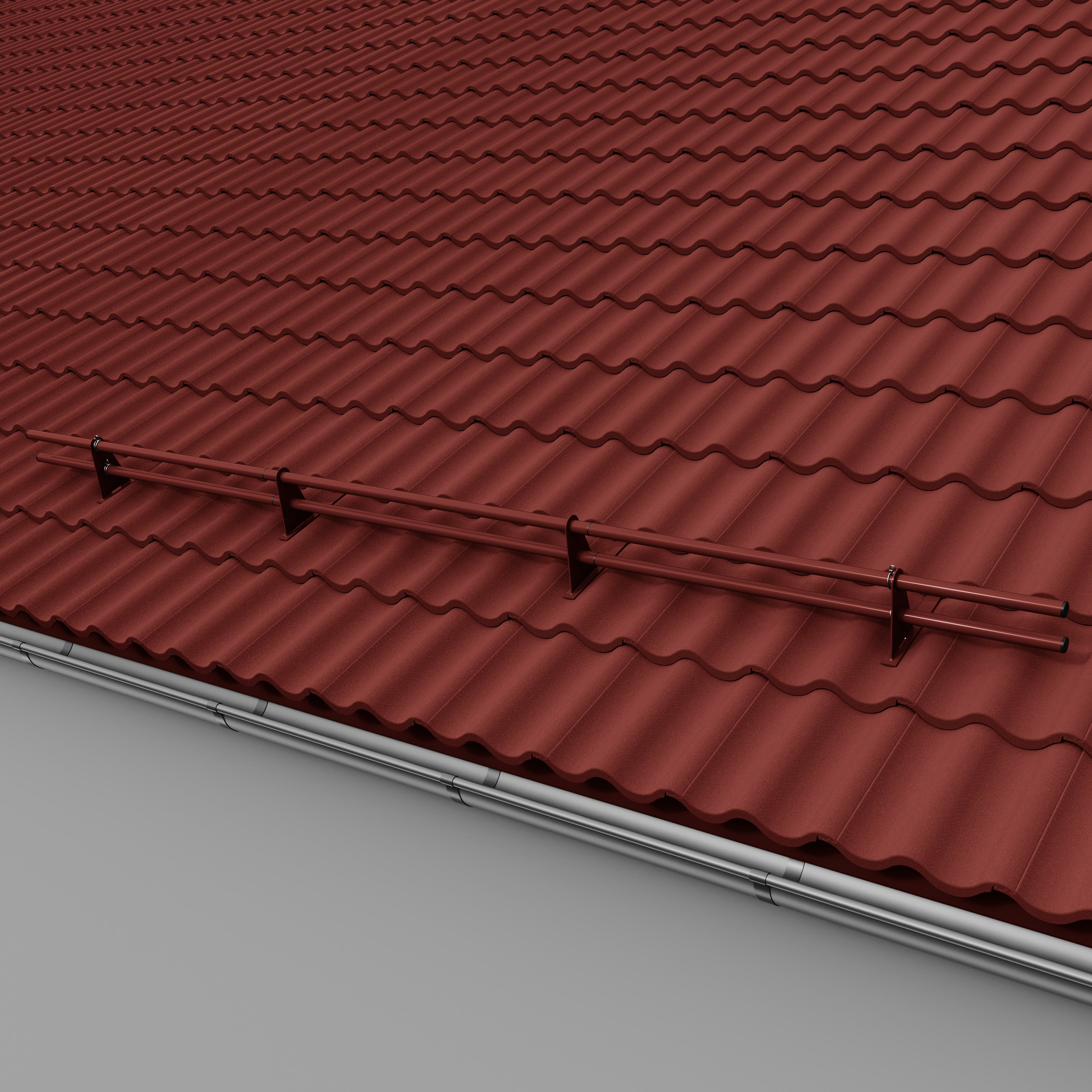 Komplet systemu rur przeciwśniegowych DZLN1 składa się z uchwytów z 1,2 lub 3 otworami i rury przeciwśniegowej. Prosty i szybki montaż tego uchwytu nie wymaga stosowania łaty pomocniczej. Montaż zestawu należy wykonać na wysokości murłaty lub w odległości nie większej niż 800 mm od niej. W pierwszej kolejności montujemy uchwyt rurowy zaczepiając go o łatę i dachówkę w jej górnej części. W dachówce, na której leży uchwyt zaleca się wykonanie wycięcie w kształcie "u" tak aby "zaczep" uchwytu oparty był o łatę a nie o grzbiet dachówki. Do montażu stosujemy wkręty do drewna z łbem stożkowym o wymiarach minimalnych Ø 6 mm x 50 mm. Przed przykręceniem można wstępnie nawiercić otwór o średnicy mniejszej niż średnica wkręta, tak aby zapobiec pękaniu drewna. W dachówce z następnego rzędu, przykrywającej uchwyt należy zeszlifować zamek na szerokość wspornika powiększoną o ok. 1 cm co wyeliminuje efekt unoszenia dachówek. Montaż rur do uchwytu odbywa się poprzez wsunięcie ich w otwory wspornika i nie wymaga stosowania połączeń śrubowych. Ilość uchwytów potrzebnych do zamontowania rur zależy od kąta nachylenia dachu (im większy kąt tym większa ilość uchwytów) oraz długości połaci. Dla dachów o długości połaci powyżej 6 m należy zwiększyć ilość uchwytów lub zastosować drugi rząd rur.