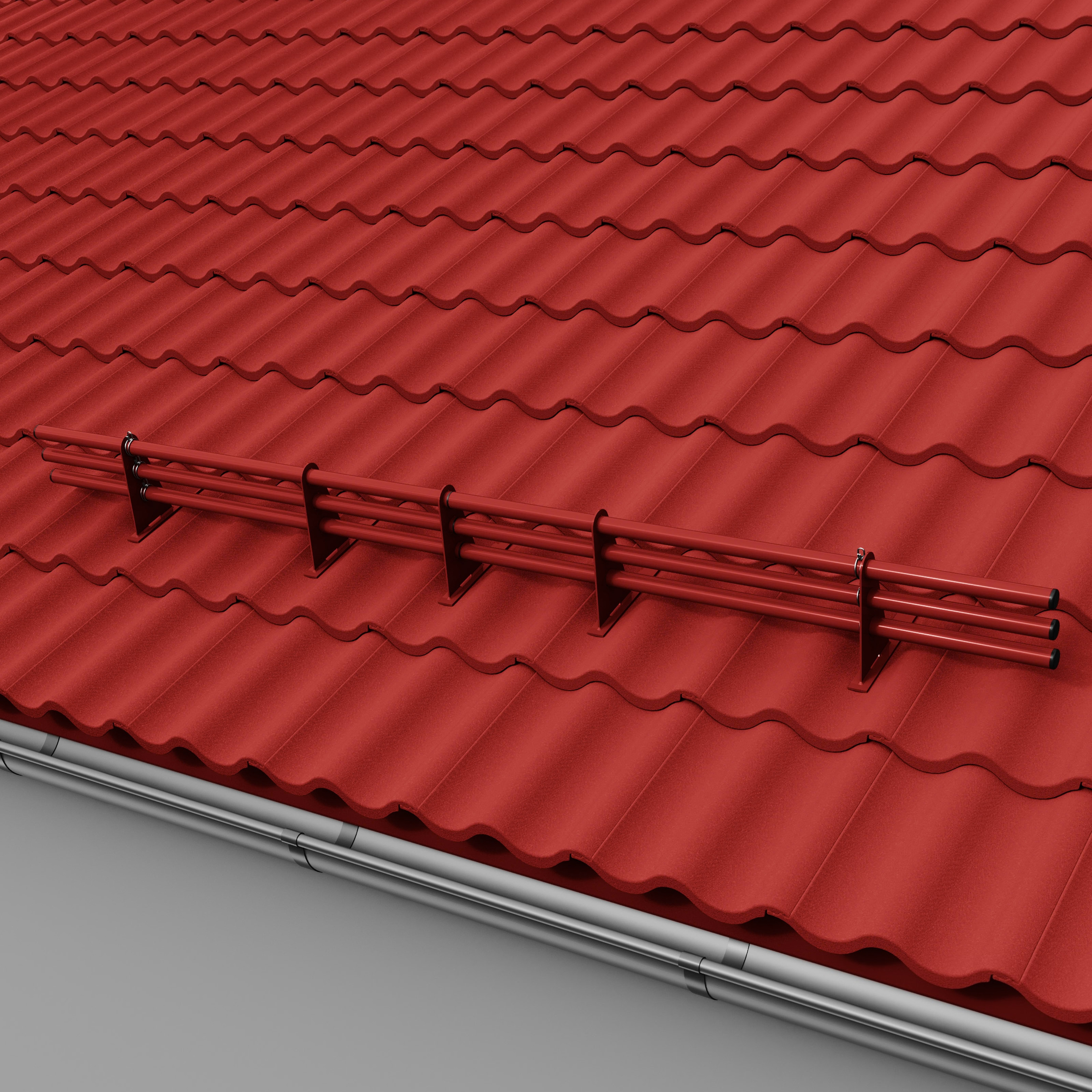 Komplet systemu rur przeciwśniegowych DZLN1 składa się z uchwytów z 1,2 lub 3 otworami i rury przeciwśniegowej. Prosty i szybki montaż tego uchwytu nie wymaga stosowania łaty pomocniczej. Montaż zestawu należy wykonać na wysokości murłaty lub w odległości nie większej niż 800 mm od niej. W pierwszej kolejności montujemy uchwyt rurowy zaczepiając go o łatę i dachówkę w jej górnej części. W dachówce, na której leży uchwyt zaleca się wykonanie wycięcie w kształcie "u" tak aby "zaczep" uchwytu oparty był o łatę a nie o grzbiet dachówki. Do montażu stosujemy wkręty do drewna z łbem stożkowym o wymiarach minimalnych Ø 6 mm x 50 mm. Przed przykręceniem można wstępnie nawiercić otwór o średnicy mniejszej niż średnica wkręta, tak aby zapobiec pękaniu drewna. W dachówce z następnego rzędu, przykrywającej uchwyt należy zeszlifować zamek na szerokość wspornika powiększoną o ok. 1 cm co wyeliminuje efekt unoszenia dachówek. Montaż rur do uchwytu odbywa się poprzez wsunięcie ich w otwory wspornika i nie wymaga stosowania połączeń śrubowych. Ilość uchwytów potrzebnych do zamontowania rur zależy od kąta nachylenia dachu (im większy kąt tym większa ilość uchwytów) oraz długości połaci. Dla dachów o długości połaci powyżej 6 m należy zwiększyć ilość uchwytów lub zastosować drugi rząd rur.