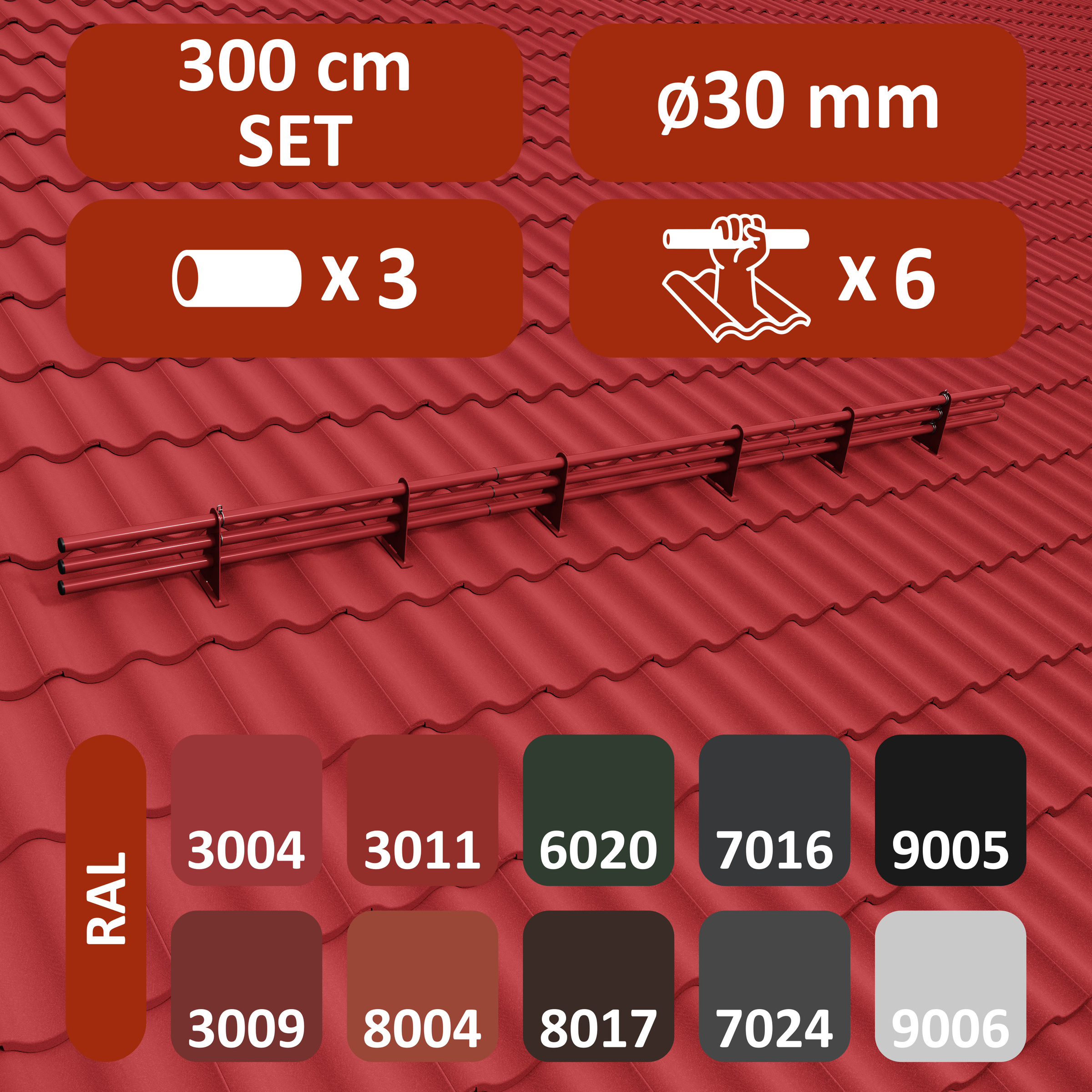 - 3, 4, 5 lub 6 uniwersalnych wsporników przeciwśniegowych