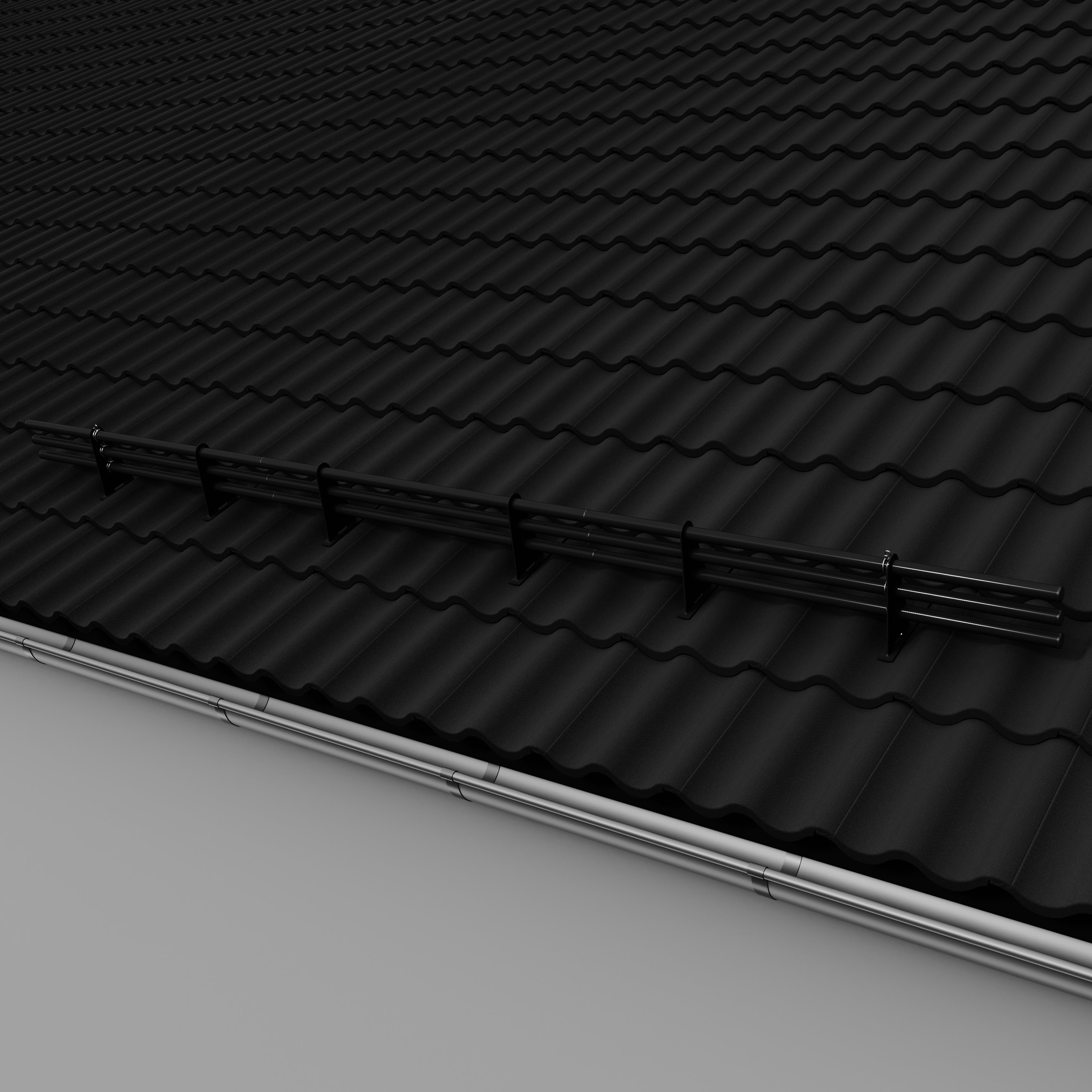 Komplet systemu rur przeciwśniegowych DZLN1 składa się z uchwytów z 1,2 lub 3 otworami i rury przeciwśniegowej. Prosty i szybki montaż tego uchwytu nie wymaga stosowania łaty pomocniczej. Montaż zestawu należy wykonać na wysokości murłaty lub w odległości nie większej niż 800 mm od niej. W pierwszej kolejności montujemy uchwyt rurowy zaczepiając go o łatę i dachówkę w jej górnej części. W dachówce, na której leży uchwyt zaleca się wykonanie wycięcie w kształcie "u" tak aby "zaczep" uchwytu oparty był o łatę a nie o grzbiet dachówki. Do montażu stosujemy wkręty do drewna z łbem stożkowym o wymiarach minimalnych Ø 6 mm x 50 mm. Przed przykręceniem można wstępnie nawiercić otwór o średnicy mniejszej niż średnica wkręta, tak aby zapobiec pękaniu drewna. W dachówce z następnego rzędu, przykrywającej uchwyt należy zeszlifować zamek na szerokość wspornika powiększoną o ok. 1 cm co wyeliminuje efekt unoszenia dachówek. Montaż rur do uchwytu odbywa się poprzez wsunięcie ich w otwory wspornika i nie wymaga stosowania połączeń śrubowych. Ilość uchwytów potrzebnych do zamontowania rur zależy od kąta nachylenia dachu (im większy kąt tym większa ilość uchwytów) oraz długości połaci. Dla dachów o długości połaci powyżej 6 m należy zwiększyć ilość uchwytów lub zastosować drugi rząd rur.