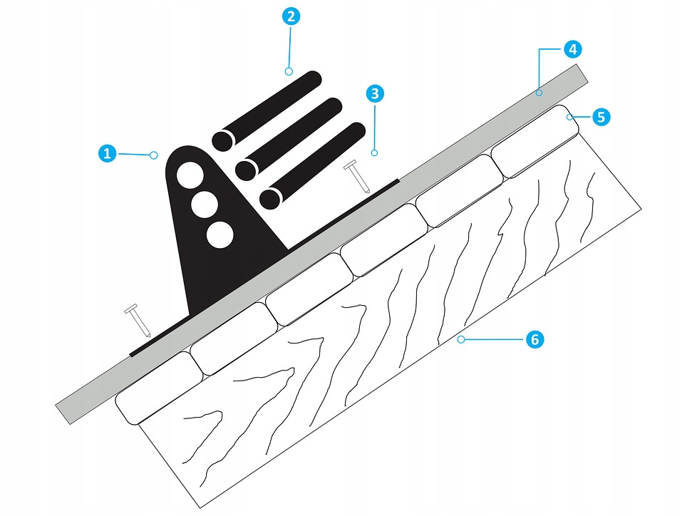 - Stosować śruby / wkręty o średnicy Ø6 mm i długości zapewniającej pewne połączenie z konstrukcją dachu.