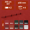 • Komplet ochrony rurowej dostępny w długościach 200 cm i 300 cm. Występuje w 10 kolorach. Zestawy zawierają 3, 4 lub 5 uchwytów – w zależności od kąta nachylenia dachu. Typ mocowania - płaskie.